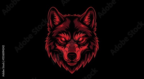Obraz premium A fierce, crimson-colored wolf's head stares intently from a black background.