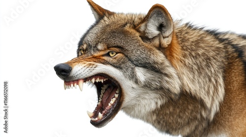 Fototapeta premium A fierce wolf with bared teeth, showcasing its powerful and aggressive...