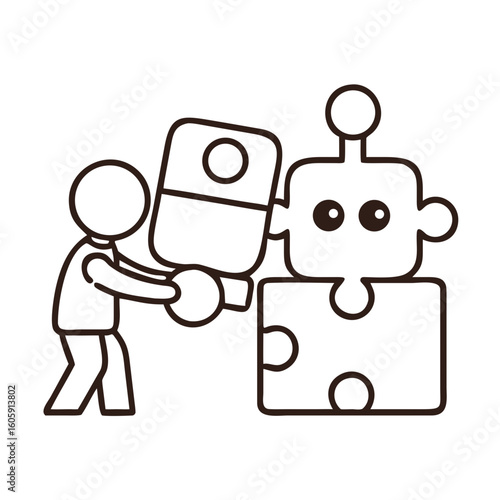 Obraz premium A figure assembling puzzle pieces, demonstrating problem-solving and teamwork