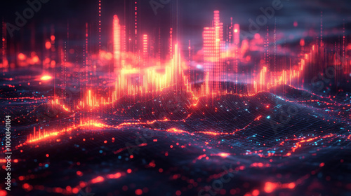 Naklejka premium A finance graph displaying predictive analytics in action, with real-time market data, AI-generated insights, and algorithmic predictions optimizing financial strategies for long-term growth