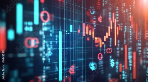 Fototapeta premium A financial backdrop showing a complex graph with upward and downward trends,...
