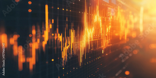 Fototapeta premium A financial chart with glowing orange bars against a dark background,...