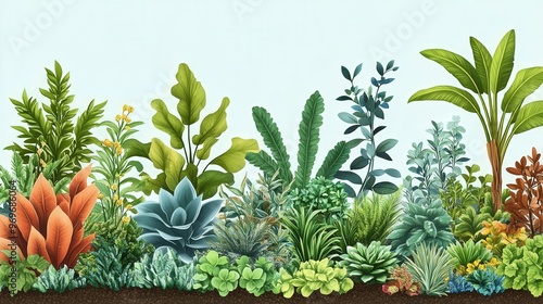 Fototapeta premium A financial portfolio depicted as a lush garden, with each plant representing...