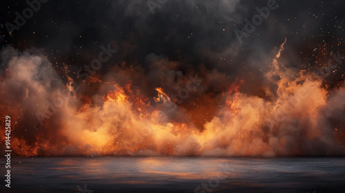 Fototapeta premium A fire is burning in the sky, with smoke and ash filling the air