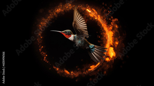 © Ayepeid, Obraz premium A fire ring with a hummingbird flying in it