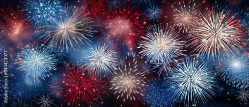 © Wonderful Studio, Fototapeta premium A fireworks display with red, white, and blue fireworks