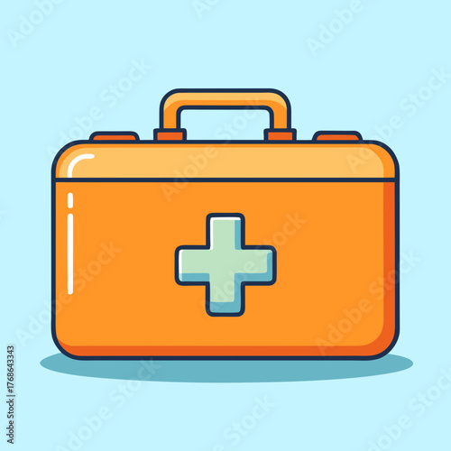 © Hakim, Obraz premium A first aid box icon against a light blue background