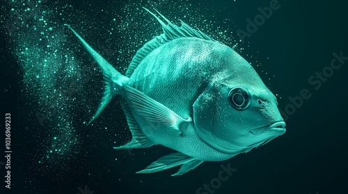 Fototapeta premium A fish closely examined in water, surrounded by bubbles, against a black...
