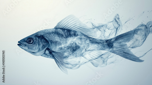 Fototapeta premium A fish dissolving into ethereal smoke, symbolizing transition, movement and...