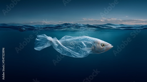 © RaptorWoman, Fototapeta premium A fish entangled in plastic highlights ocean pollution issues, emphasizing the environmental impact of waste on marine life.
