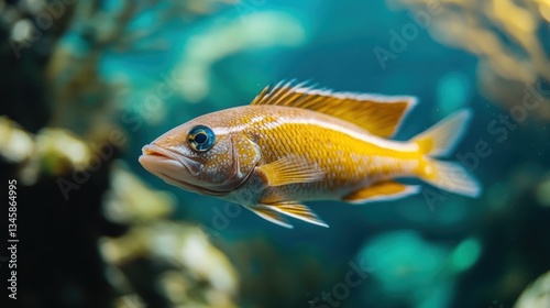 Naklejka premium A fish swimming in an aquarium, colorful and vibrant, aquatic life photography