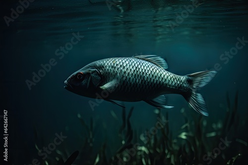 © Golib Tolibov, Fototapeta premium a fish swimming in the water, with its mouth open and it's head turned to look like an alien