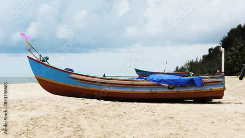 Naklejka premium A fishing boat moored at Marari beach, Alappuzha, Kerala, India