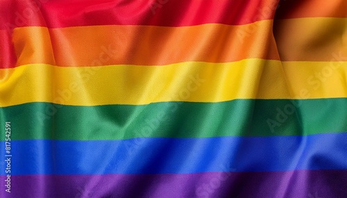 Fototapeta premium A flag, in vibrant rainbow colors, waves in the wind with realistic lighting and a subtle texture.