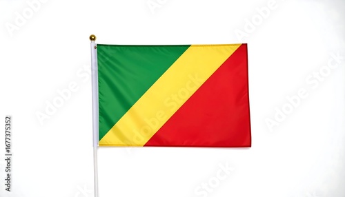 Obraz premium A flag on a white plastic stick featuring green, yellow, and red blocks against a solid white background