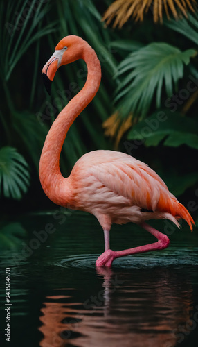 © Nikname, Fototapeta premium A flamingo is standing in a body of water
