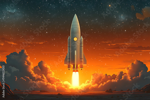 Fototapeta premium A flat art illustration of a rocket with a sleek and minimalist design,...
