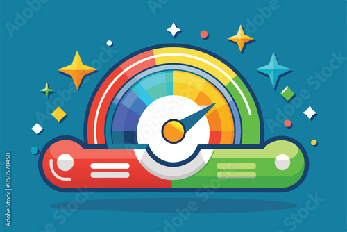 Obraz premium A flat illustration of a colorful progress indicator with a needle pointing...
