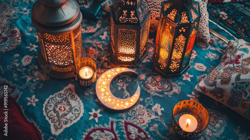 Fototapeta premium A flat lay of Ramadan-themed table decor Islamic Ramadan