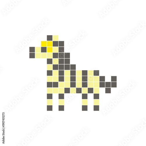 Obraz premium A flat pixel design made of geometric square color blocks on a clean icon layout. Pixel art zebra
