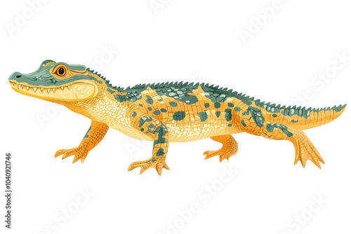 © cloud7days, Naklejka premium A flat style illustrated crocodile, isolate on white background, displaying its unique features in a vibrant color palette. PNG