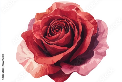 Fototapeta premium A flat style illustration of a red rose, isolate on white background,...