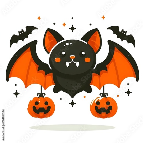 Fototapeta premium A flat-style illustration of a spooky Halloween bat with simple shapes. Perfect for Halloween decorations, spooky designs, and themed content. Clean and minimalist on a white background.