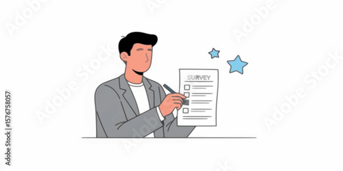 Fototapeta premium A flat vector illustration of a businessman in a suit holding a document or...