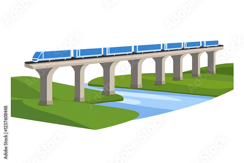 Fototapeta premium A flat vector illustration of a large bridge spanning a river under a clear blue sky
