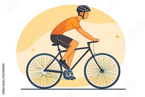 Fototapeta premium A flat vector illustration of a person riding a bicycle in a modern urban setting