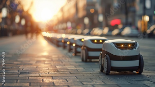 Fototapeta premium A fleet of autonomous delivery drones and robots representing the future of...
