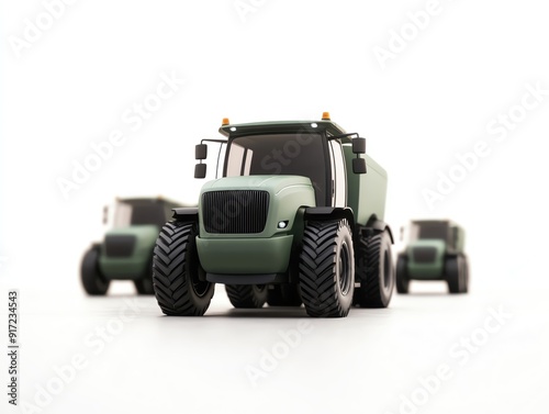 © Khuefa, Naklejka premium A fleet of electric agricultural vehicles, farm setting, 3D visualization, isolated on white background