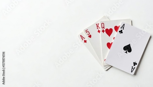 © Latsamee, Obraz premium A flipped-over playing card isolated against a white backdrop, king, vintage, suit