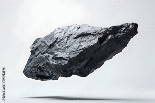 © Banstanks, Fototapeta premium A floating black rock showcasing a modern, abstract design.