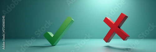 © Manu, Obraz premium A floating green checkmark and red cross are selected interactively, captured with leading lines to create an engaging visual that allows ample room for textual overlay.