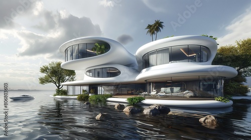 Obraz premium A Floating House On A Lake.