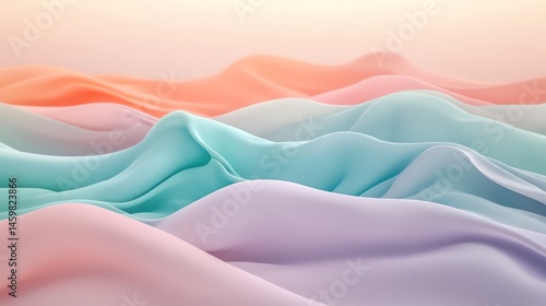 © KPMusa, Obraz premium A floating pastel gradient with smooth waves of coral