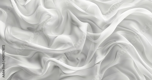 Fototapeta premium A floating surreal white smooth woven fabric, Texture: Transparent feeling,...