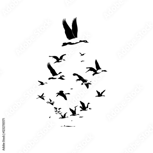 © isuru, Fototapeta premium A Flock Of Birds Flying Vector Logo Design