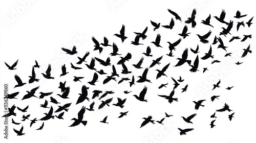 Naklejka premium A Flock of Birds in Flight: A Silhouette of Freedom and Unity