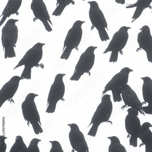 © Big9869, Obraz premium A Flock of Crows in Flight, Black Birds Silhouette, Avian Gathering