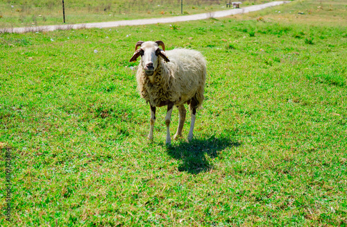 © de Art, Obraz premium a flock of sheep grazing in a field