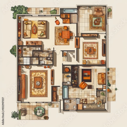 © Bouchra, Obraz premium A floor plan of a house with a living room, dining room, and kitchen