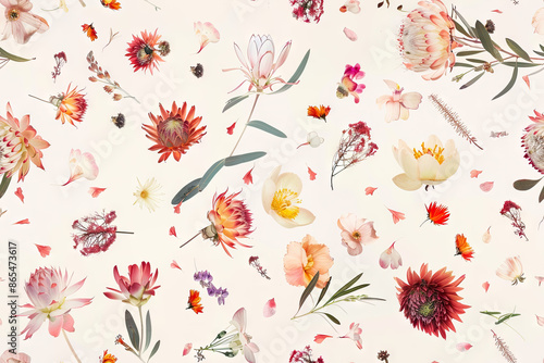 © Kitta Studio, Obraz premium a floral background with flowers and leaves