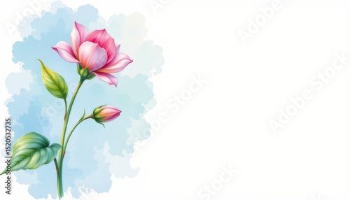 © panyawatt, Naklejka premium a floral watercolor design with two flowers at the top, one pink and one white with green leaves