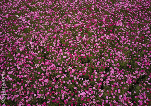 © 73, Naklejka premium A flower field photographed from directly above with professional photographer quality, AI-generated