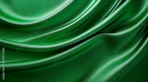 © semut, Obraz premium A flowing drape of rich green fabric is shown here