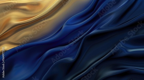 © Gams Images & Videos, Obraz premium A flowing fabric design with rich gold and deep blue tones, evoking elegance and luxury.