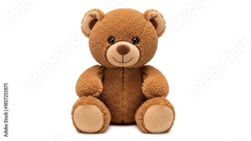 © MD Rakib, Obraz premium A fluffy brown teddy bear sits facing forward against a white background