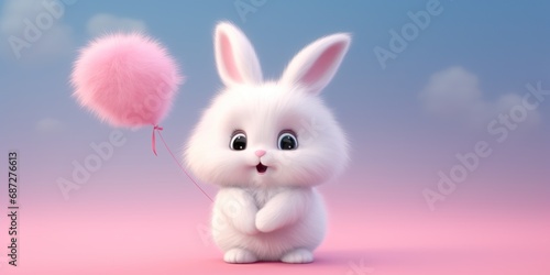 Obraz premium A fluffy bunny character holding a heart-shaped balloon, against a soft pink...